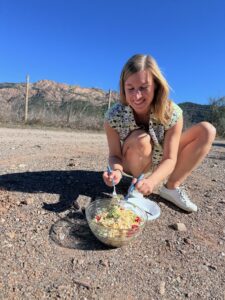 Wat ik vooral meeneem van deze reis, is het besef om nòg meer op mijn gevoel te vertrouwen. Wat ik al wel deed, maar nòg meer mag geloven en voelen, samen met mijn lief. Suzanne liet me zien dat werkelijk alles een reden heeft – tegenvallers of onverwachte wendingen, een andere route dan verwacht. Ik wist het wel, maar ik voel het nu ook. Ook in deze reis ging het vaak anders dan verwacht. Door mee te bewegen met die flow van loslaten en meegaan, kom je juist op bijzondere plekken en bij inzichten die je niet kunt bedenken, alleen kunt voelen. Dat heb ik zo intens gevoelt. Zo heb ik voor het eerst de ochtenden vroeg niet altijd QiGong gedaan, maar alleen gezeten op het strand, kijkend naar die geweldige zee, helemaal alleen en toch samen. En het zwemmen was echt fantastisch.
